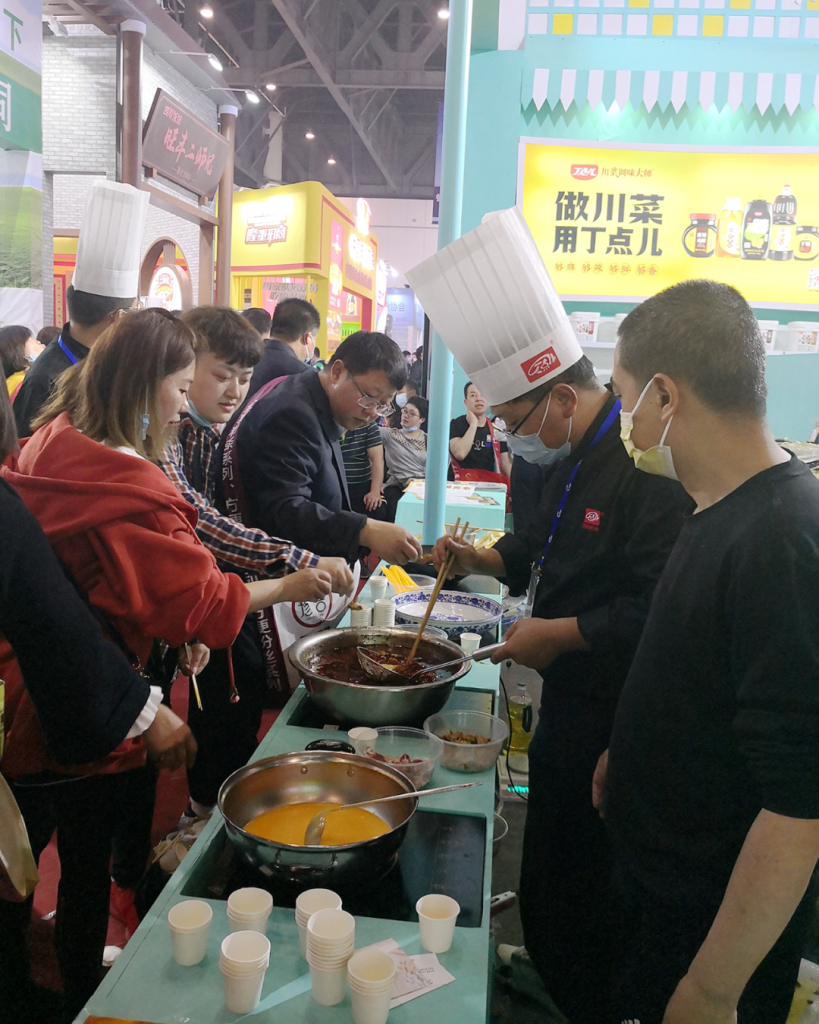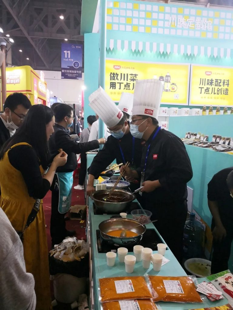 ? ? ?四川丁點(diǎn)兒股份針對(duì)流通、餐飲定制和家庭廚房調(diào)味料,現(xiàn)場(chǎng)產(chǎn)品展示突出搶眼、菜品應(yīng)用色香味型俱全。干鍋醬、椒麻雞汁、老壇酸菜魚、金湯酸辣醬、川味辣鹵汁、麻辣(蒜香)小龍蝦、油醋汁、姬松茸菌湯等經(jīng)典川菜調(diào)料明星產(chǎn)品隆重亮相,吸引了大批參會(huì)者前來(lái)品嘗并達(dá)成合作意向。