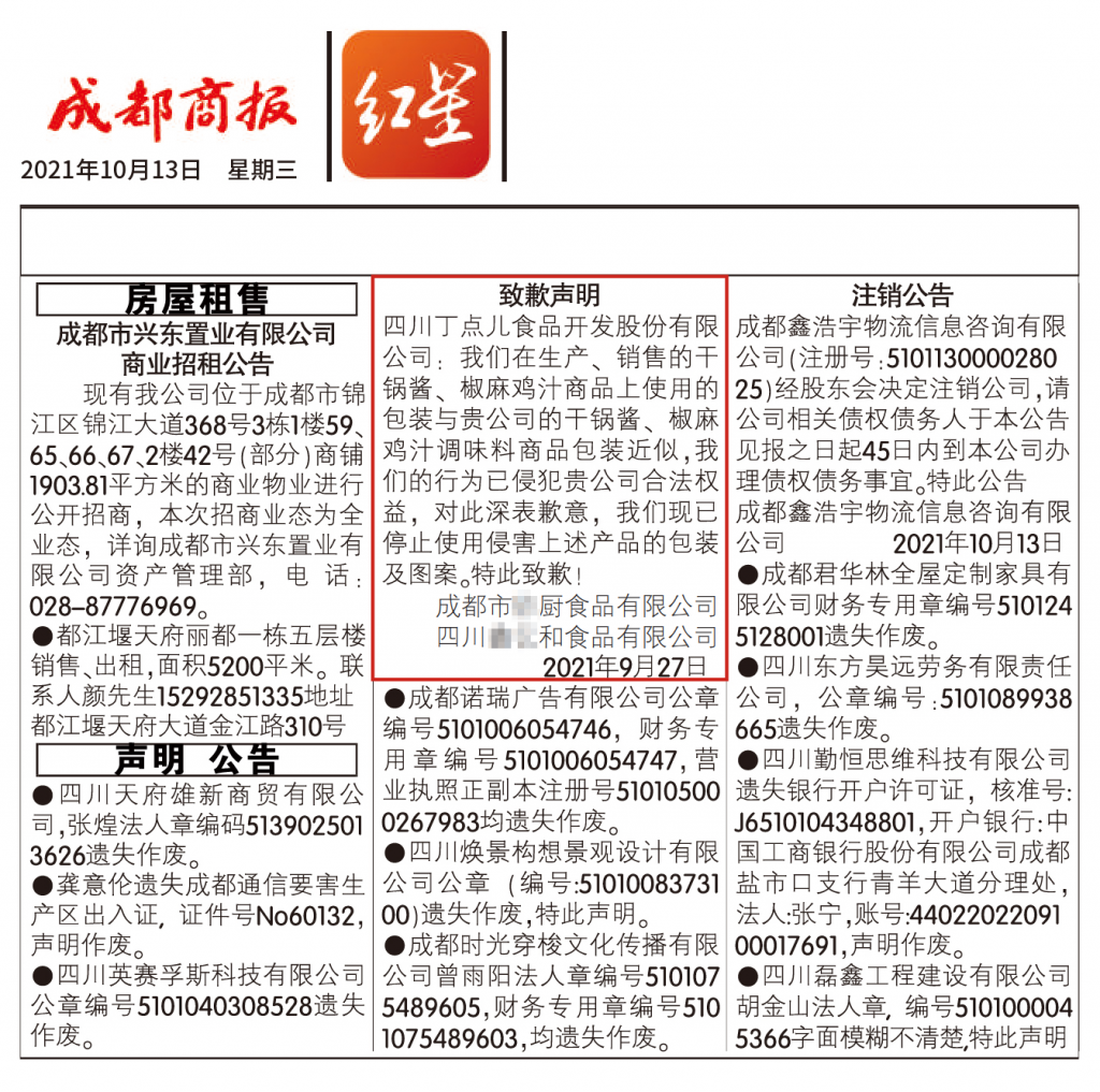 捍衛(wèi)知識產(chǎn)權(quán)和消費者利益,丁點兒股份干鍋醬、椒麻雞汁維權(quán)案勝訴