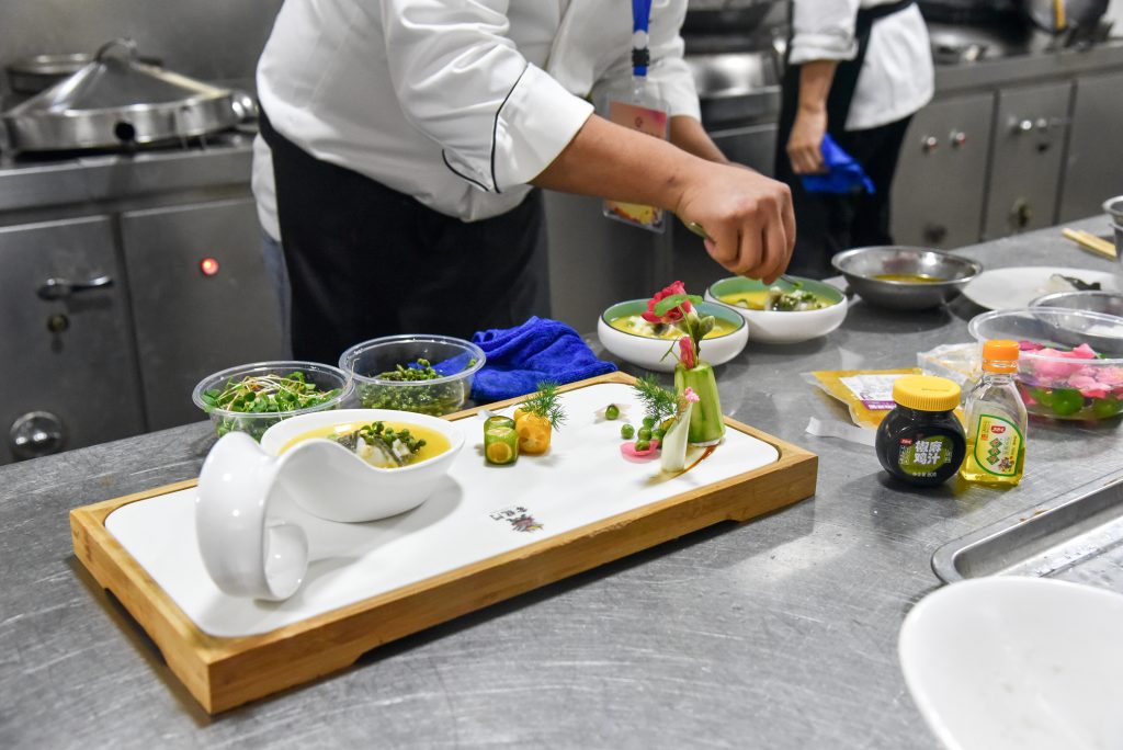 ? ? ? ?本次比賽旨在推動(dòng)傳統(tǒng)烹飪技藝的傳承與發(fā)展,加強(qiáng)企業(yè)間的溝通與交流。賽場(chǎng)上,選手們各顯神通,切絲、切片、碼味、炒制,紛紛拿出自己的看家本領(lǐng);展示區(qū),銀針絲、糖粘花仁、水煮魚等一道道已完成的菜品紛紛呈現(xiàn),引人注目。這不僅是一次比賽,更是大家切磋技藝、展示水平的舞臺(tái),競(jìng)爭(zhēng)中,大家互相學(xué)習(xí)、爭(zhēng)相進(jìn)步。