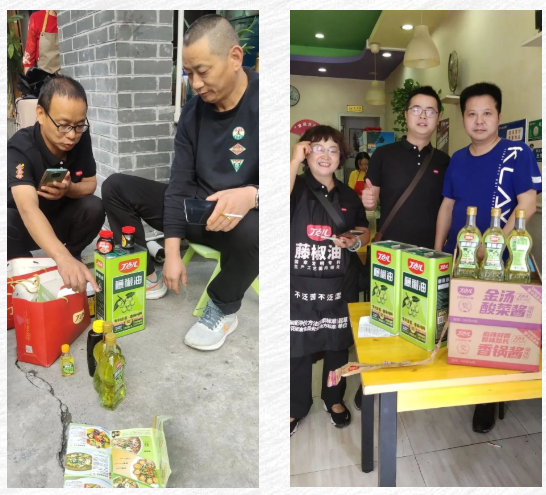 ? ? ? ? 突擊活動期間,銷售團隊走遍了綿陽市區(qū)及所轄郊縣的大街小巷,深入當(dāng)?shù)亟K端餐飲市場逐一拜訪,不放過一個潛在客戶,全力以赴,力爭優(yōu)異成績。為達成銷售目標(biāo),他們不怕苦、不怕累,有的抱著5L的藤椒油走街串巷推廣,有的晚上十一點還在拜訪客戶,還有的堅持拜訪同一個客戶三次,最終實現(xiàn)交付……廠商攜手配合默契,極大地增強了經(jīng)銷商合作信心!