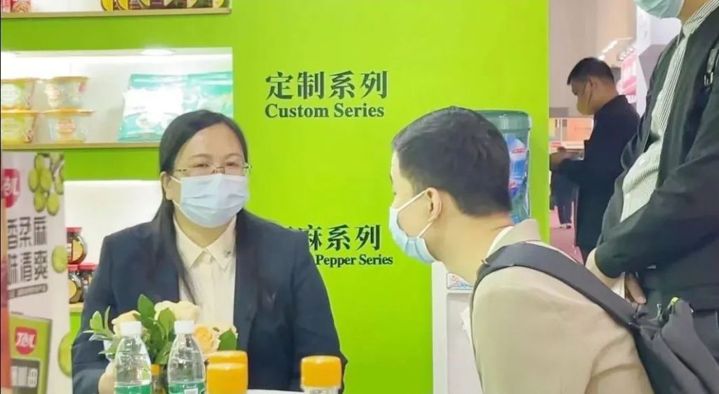 調(diào)味品展區(qū)可謂是爭奇斗艷,川味復(fù)合調(diào)味料品類展示尤為突出搶眼,椒麻、麻辣、酸辣等20多種復(fù)合味型調(diào)味料一應(yīng)俱全。