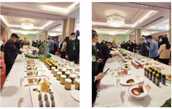 比賽現(xiàn)場,丁點(diǎn)兒股份干鍋醬、麻得倒花椒油、藤椒油、椒麻雞汁、金湯酸菜醬等企業(yè)明星產(chǎn)品展示突出亮眼,出眾的味型引得眾多嘉賓駐足品嘗,贊不絕口。