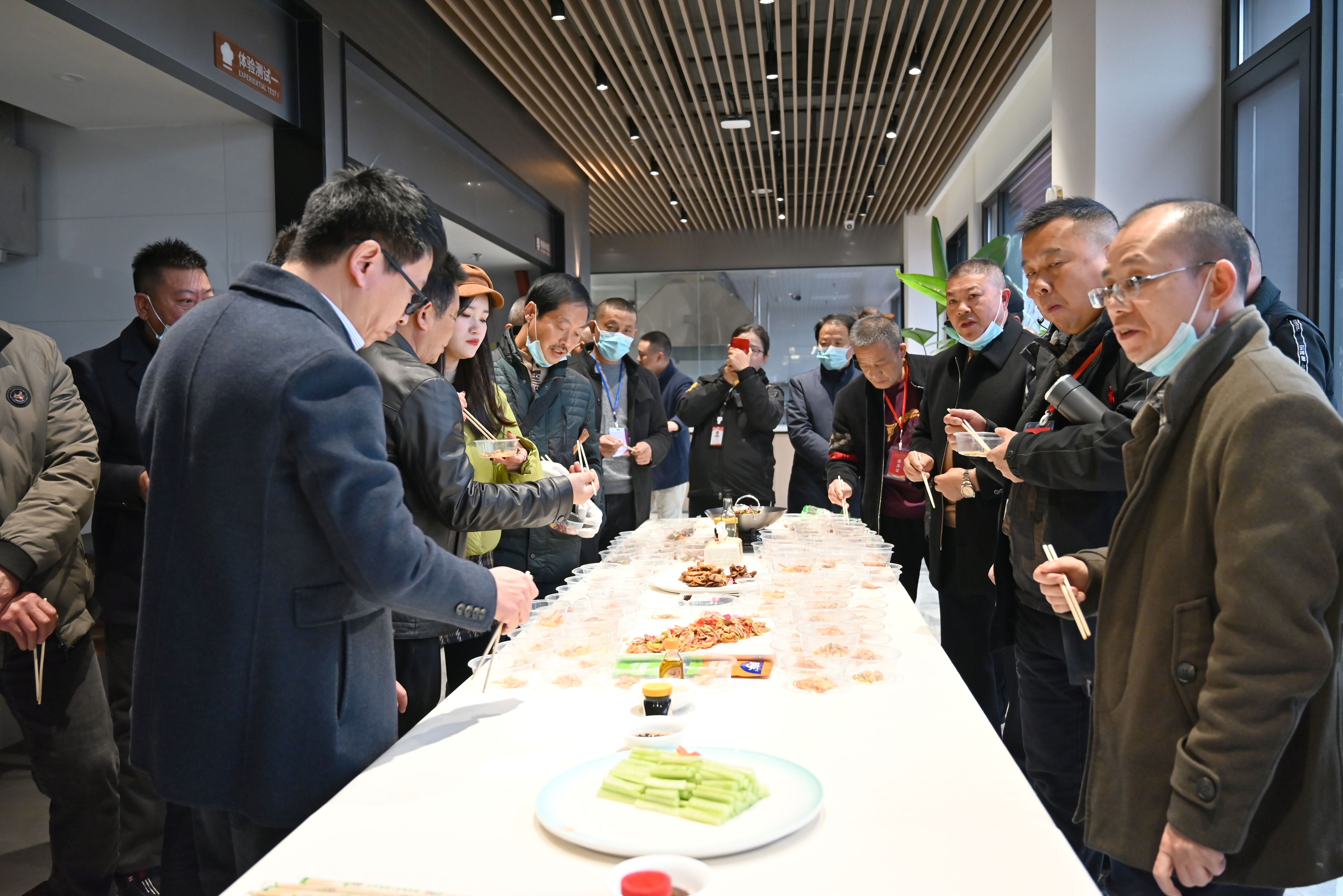 用丁點兒藤椒油、川味辣鹵、金湯酸菜醬等高品質(zhì)特色川調(diào)烹飪的椒麻手撕雞、辣鹵拼盤、酸菜魚片等特色佳肴俘獲了在場所有人的味蕾,也讓大家對丁點兒產(chǎn)品有了更深了解。