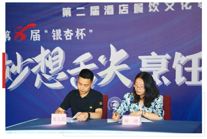 隨后,秦經(jīng)理代表丁點(diǎn)兒食品與成都銀杏酒店管理學(xué)院副院長(zhǎng)秘濤進(jìn)行了校企簽約儀式,標(biāo)志著雙方合作再啟新程。