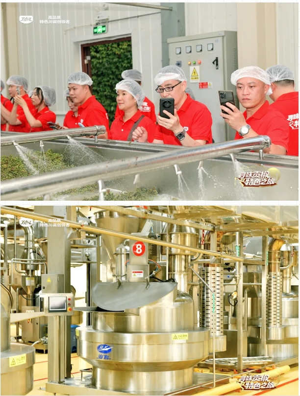 來(lái)到丁點(diǎn)兒食品生產(chǎn)車間,嘉賓們近距離觀察貢椒制品從原料到成品的全過(guò)程,見(jiàn)證了每一個(gè)環(huán)節(jié)的精心把控,沉浸式體驗(yàn)丁點(diǎn)兒對(duì)產(chǎn)品的高標(biāo)準(zhǔn)、嚴(yán)要求的匠心精神。