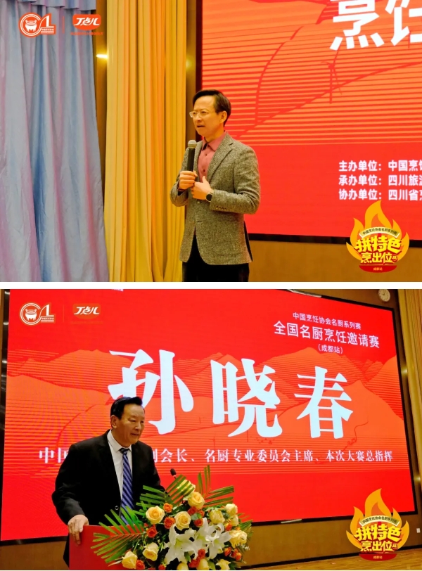 丁點兒食品董事長任康,中國烹飪協(xié)會副會長、名廚專業(yè)委員會主席孫曉春,四川旅游學(xué)院黨委常委、副校長王沖,四川省美食家協(xié)會會長麥建玲,四川省烹飪協(xié)會執(zhí)行會長高樸,四川省財貿(mào)輕化紡工會常委、成都市美食業(yè)工會主席王獻章,成都餐飲同業(yè)工會會長袁小然等相關(guān)領(lǐng)導(dǎo)出席了大賽開幕儀式,并紛紛登臺致辭,對本次大賽給予了高度評價與深切期望。