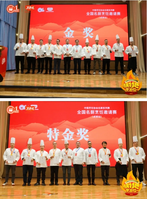 經(jīng)過四輪中式烹調(diào)的激烈競技,最終決出特金獎34名,金獎46名,銀獎27名。