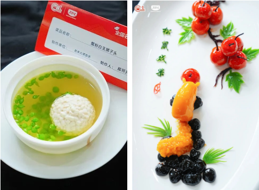 最終,大賽評(píng)選出特金獎(jiǎng)10名,金獎(jiǎng)48名,銀獎(jiǎng)66名。來(lái)自君來(lái)太湖飯店的選手顏照亮,憑借烹制的蟹粉白玉獅子頭、松鼠戲果兩道菜品,以獨(dú)特創(chuàng)意與突出風(fēng)味拔得頭籌,獲得獎(jiǎng)金¥15000元。