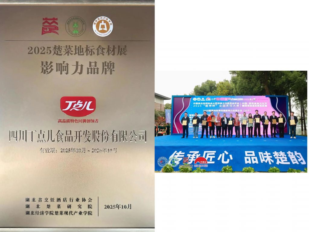 川調(diào)融楚味!丁點(diǎn)兒榮獲”2025楚菜地標(biāo)食材展影響力品牌”稱(chēng)號(hào)