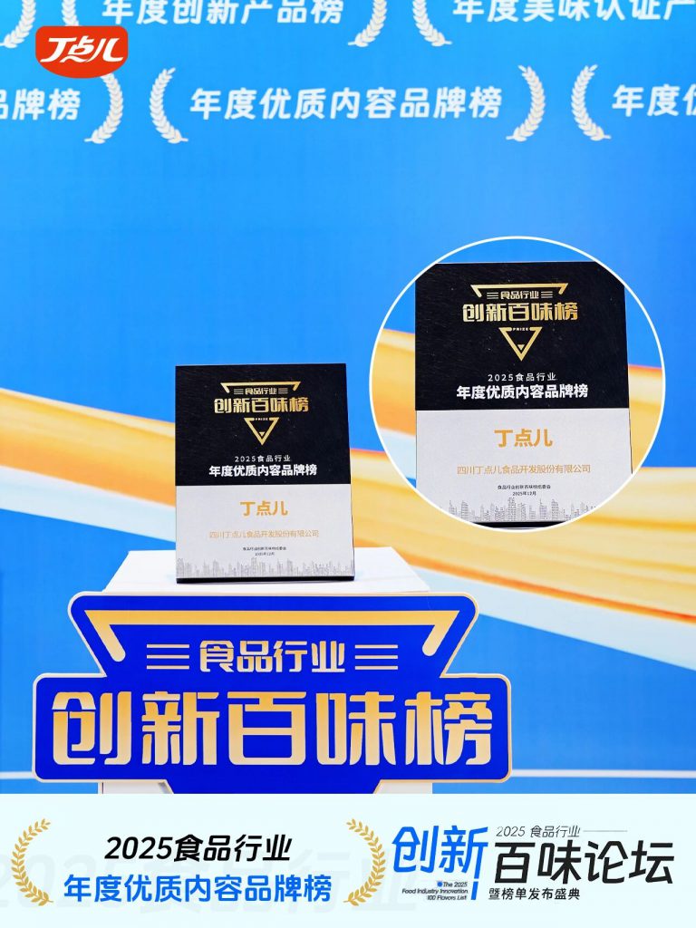 榮耀登榜!丁點(diǎn)兒榮獲2025食品行業(yè)“創(chuàng)新百味榜”雙項(xiàng)大獎(jiǎng)