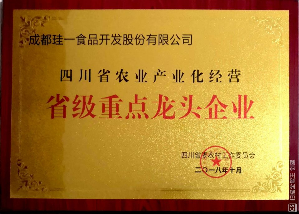 農(nóng)產(chǎn)品加工示范企業(yè)證書