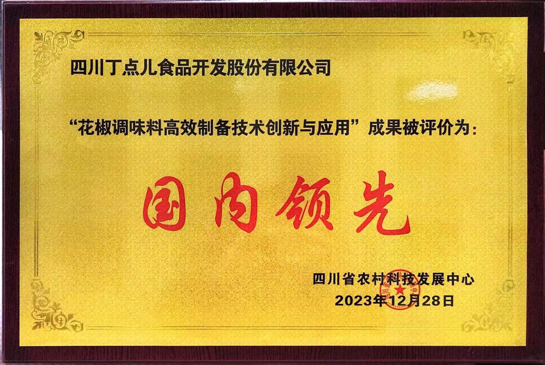 喜訊!丁點兒食品“花椒調(diào)味料高效制備技術(shù)創(chuàng)新與應用”成果被評定為“國內(nèi)領先”
