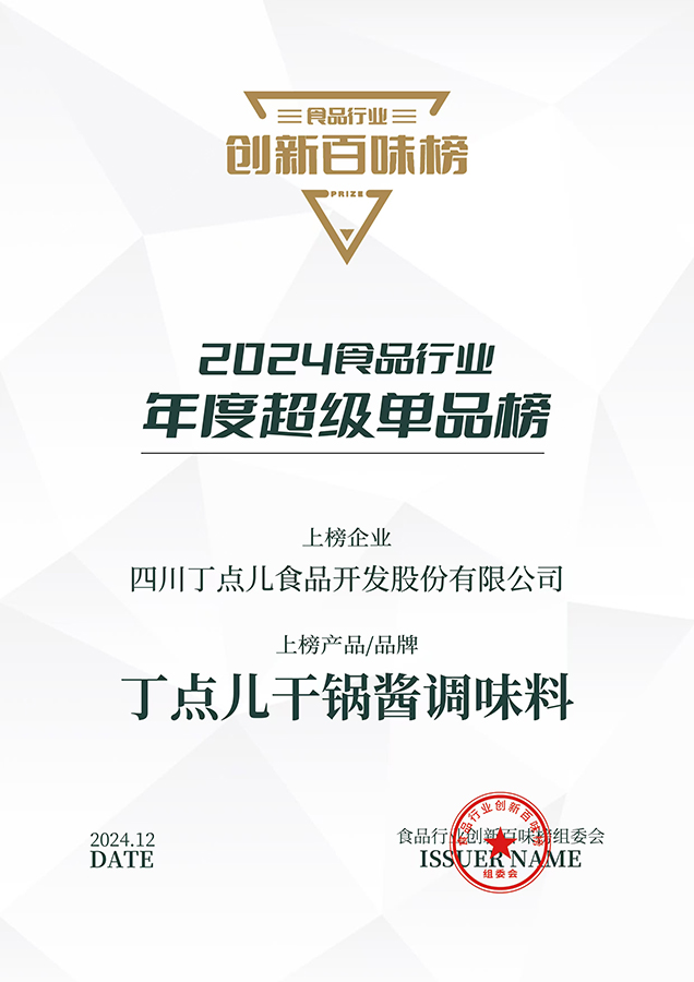 丁點兒干鍋醬獲“2024食品行業(yè)年度超級單品”獎