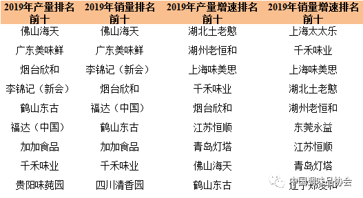 2019年中國(guó)調(diào)味品著名品牌企業(yè)100強(qiáng)中醬油企業(yè)產(chǎn)量和銷量排名前十企業(yè)