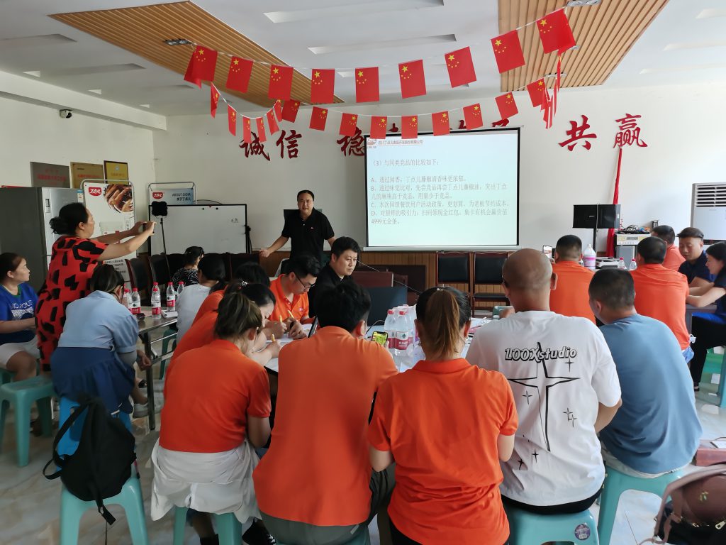 ? ? ? ?8月9日,來(lái)自丁點(diǎn)兒股份與遂寧巴味鮮的20名銷(xiāo)售精英齊聚遂寧召開(kāi)了突擊活動(dòng)培訓(xùn)暨動(dòng)員大會(huì)。丁點(diǎn)兒股份市場(chǎng)總監(jiān)劉振平作為本次活動(dòng)的負(fù)責(zé)人組織針對(duì)丁點(diǎn)兒企業(yè)概況、新產(chǎn)品特性?xún)?yōu)勢(shì)、促銷(xiāo)舉措、銷(xiāo)售技巧、信心鼓舞、成效考核及激勵(lì)措施等方面開(kāi)展了多維度內(nèi)容培訓(xùn),為本次活動(dòng)完成既定目標(biāo)任務(wù)奠定了堅(jiān)實(shí)基礎(chǔ)。
