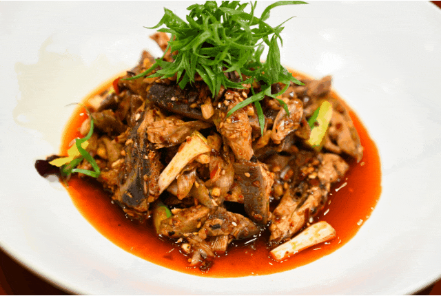 活動(dòng)現(xiàn)場(chǎng),中式烹飪高級(jí)技師陳迪洲、四川天府名廚謝君憲結(jié)合當(dāng)?shù)靥厣擞枚↑c(diǎn)兒藤椒油、椒麻雞汁、干鍋醬、金湯酸菜醬等現(xiàn)場(chǎng)演繹制作了紅油蒜香魷魚、椒麻脆皮腸、藤椒跳跳蛙、金湯酸菜烏魚花等菜品,既展示了大師高超的烹飪技藝,也幫助參會(huì)人員加深了產(chǎn)品理解,提供了菜品創(chuàng)新思路。