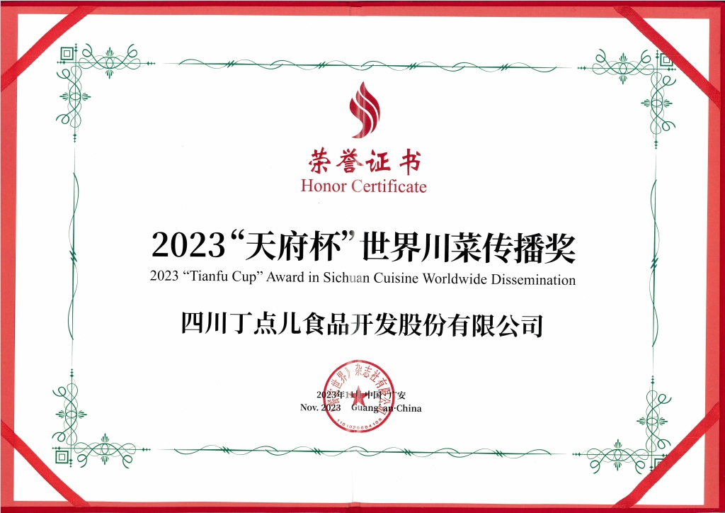憑借出色的企業(yè)影響力和巨大的發(fā)展?jié)摿?,丁點(diǎn)兒食品在這一年又?jǐn)孬@了多項(xiàng)榮譽(yù)。“年度超級品牌之星”、2023“天府杯”世界川菜傳播獎(jiǎng)、第十一屆中國食材電商節(jié)-優(yōu)質(zhì)企業(yè)推薦等稱號(hào),充分展示了行業(yè)對丁點(diǎn)兒食品實(shí)力的肯定。