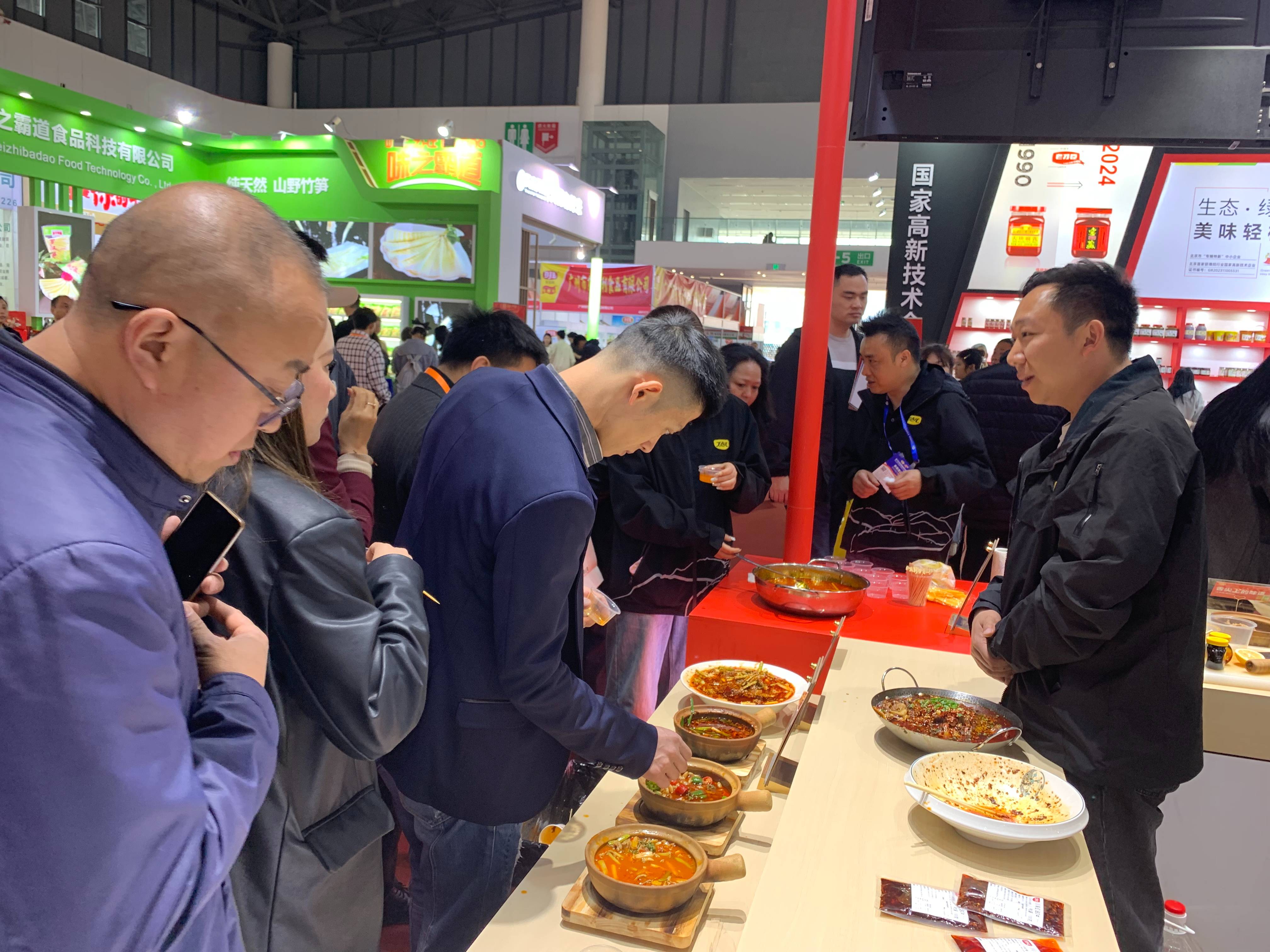 展位上,丁點兒食品應用工程師現(xiàn)場用丁點兒干鍋醬、老壇酸菜醬、水煮醬等烹飪的干鍋掌中寶、酸菜魚、舌尖上的味道及砂鍋肥腸、砂鍋水煮肉片、貴州酸湯火鍋、口水雞等特色風味菜品,吸引了眾多參會者駐足品嘗。產(chǎn)品便捷的操作和特色的味型給大家留下深刻印象,紛紛咨詢了解、洽談合作。