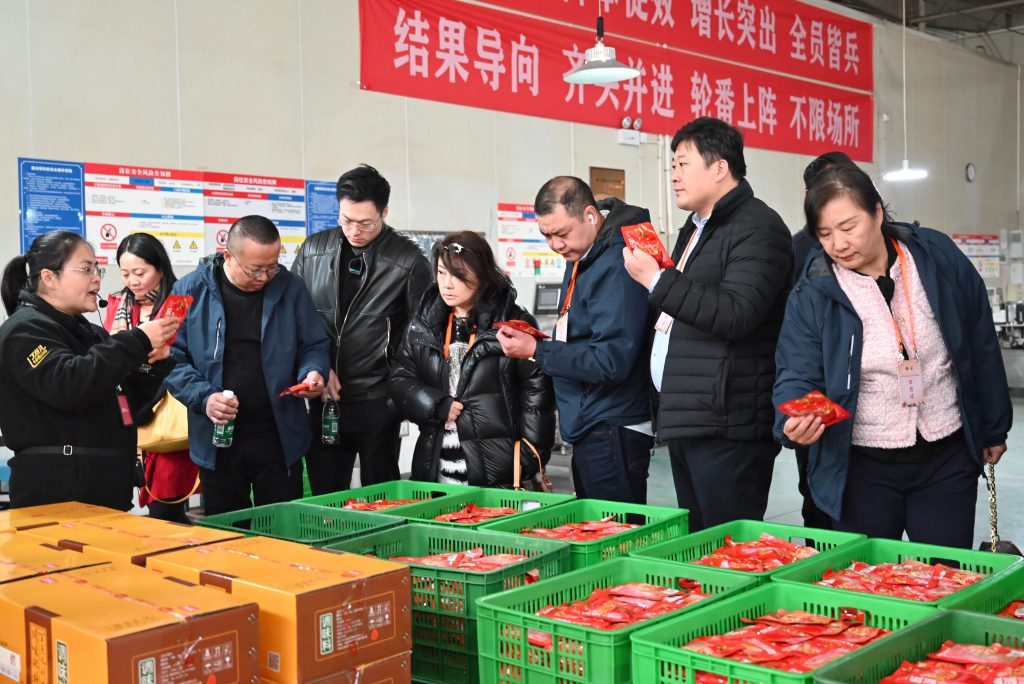 晴空萬(wàn)里,微風(fēng)和暢。12月15日,來(lái)自俄羅斯、日本、韓國(guó)、美國(guó)等30多個(gè)國(guó)家的2024“親情中華?味道四川”海外中餐業(yè)社團(tuán)負(fù)責(zé)人研修班一行50余人,帶著對(duì)中華美食文化的深厚情感與探索精神,來(lái)到丁點(diǎn)兒食品進(jìn)行考察學(xué)習(xí)。