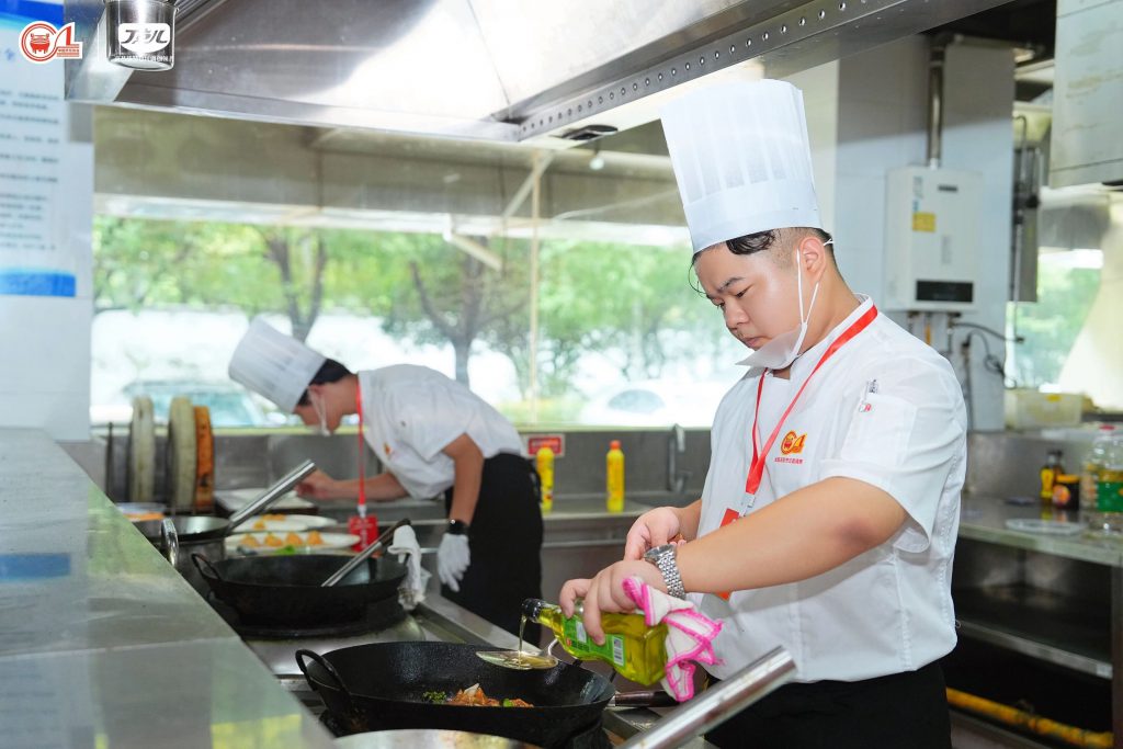 賽場(chǎng)上,氣氛緊張而熱烈,灶火的呼嘯、刀具與砧板的碰撞、食材下鍋的瞬間脆響相互交織。每位選手全神貫注,將丁點(diǎn)兒干鍋醬、椒麻雞汁、老壇酸菜醬等7款大賽指定調(diào)味品與本地食材進(jìn)行巧妙結(jié)合與創(chuàng)作,確保每一道出品都是匠心之作。